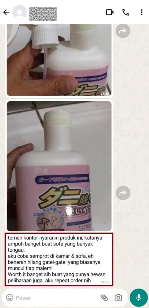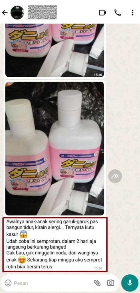 Karena kutu kasur tidak bisa hilang hanya dengan dibersihkan biasa. Produk ini bekerja langsung di sumbernya dengan efek perlindungan jangka panjang. Cukup semprot, tunggu, dan rasakan hasilnya!